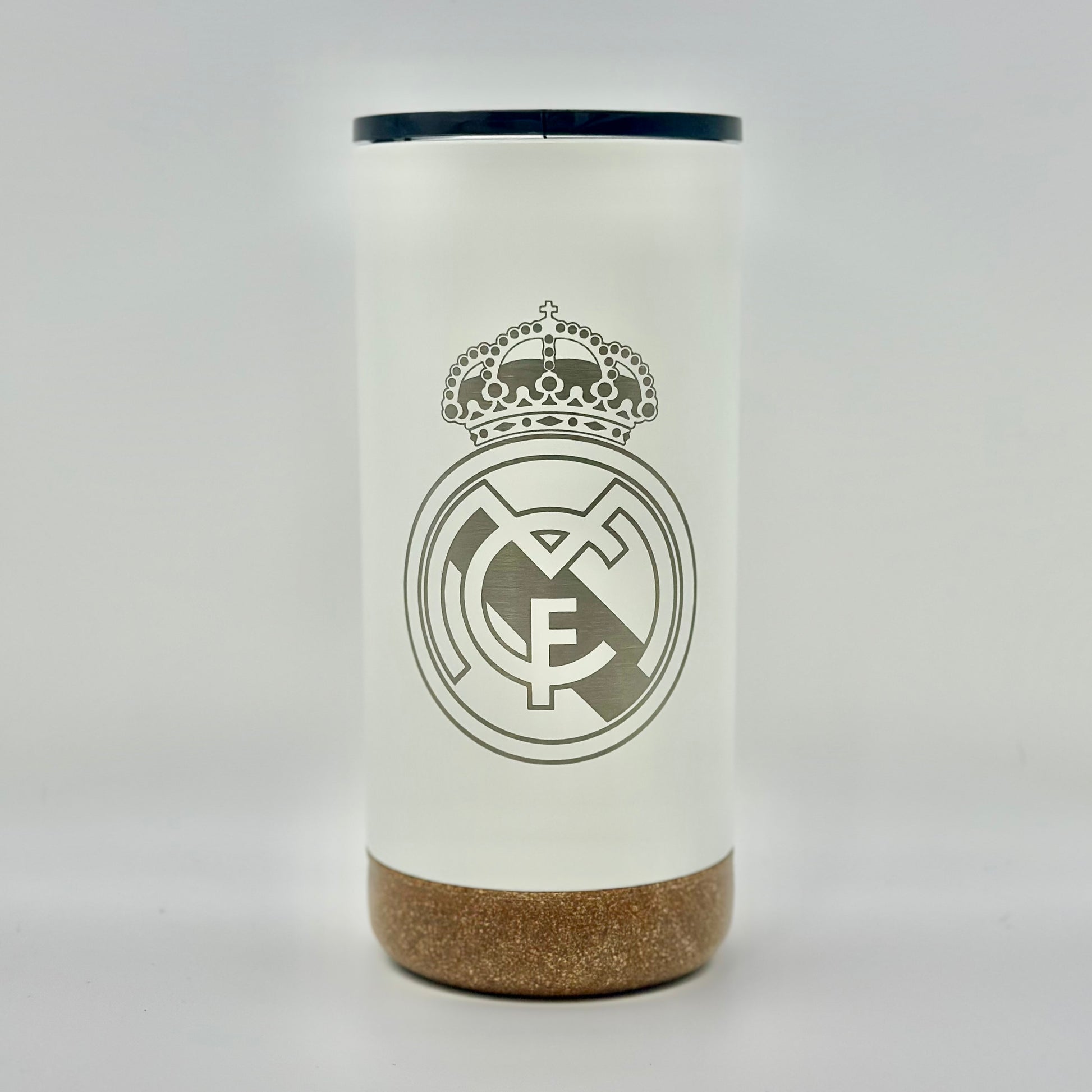 Show off your club pride with our engraved tumblers. Our 16oz double-wall insulated tumbler keeps beverages hot or cold while you're on the move. It features a matte finish & sleek profile that fits easily into cup holders & Gummed anti-slip cork base for stability. Customize it with your preferred fútbol crest. Choose from Black or White finishes.